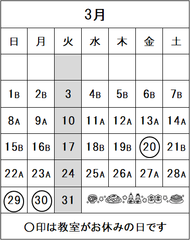 - その他、ご連絡などございましたら、教室までお問い合わせください。